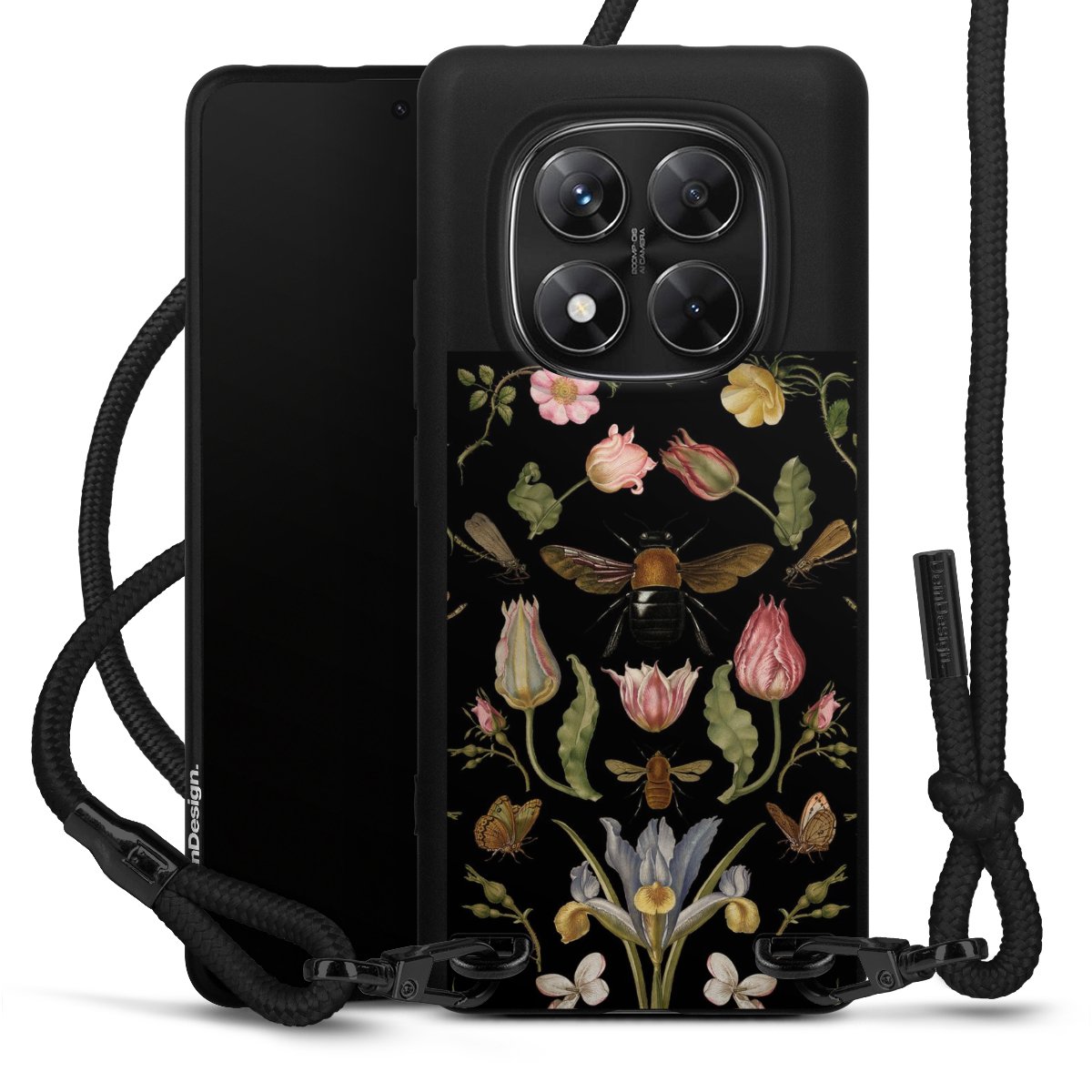 The matt black silicone case is made of flexible TPU (thermoplastic polyurethane) and offers robust protection. The durable, unbreakable material makes the cover flexible and dimensionally stable at the same time. The matte surface makes your design stand out more and is less susceptible to fingerprints and dirt. The stylish trend accessory fits comfortably in the hand and is perfectly complemented by the fabric (polyester) mobile phone strap. The braided fabric strap is approx. 1.70 metres long with a diameter of approx. 0.5 cm. Due to the special knotting technique, the length of the strap can be adjusted by simply pulling it, so that you can adapt it individually to your wishes. The practical case to wear around your neck is available with the fabric strap in black. As a little icing on the cake, we have provided the strap with a chic metal fastener in matt black. The strap is securely fastened to the case with loops made of high-quality genuine leather and press studs. The ends of the fabric strap are covered with metallic end caps and thus protected from fraying.