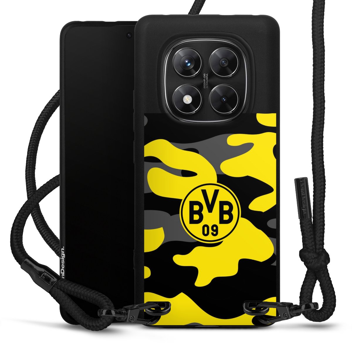 The matt black silicone case is made of flexible TPU (thermoplastic polyurethane) and offers robust protection. The durable, unbreakable material makes the cover flexible and dimensionally stable at the same time. The matte surface makes your design stand out more and is less susceptible to fingerprints and dirt. The stylish trend accessory fits comfortably in the hand and is perfectly complemented by the fabric (polyester) mobile phone strap. The braided fabric strap is approx. 1.70 metres long with a diameter of approx. 0.5 cm. Due to the special knotting technique, the length of the strap can be adjusted by simply pulling it, so that you can adapt it individually to your wishes. The practical case to wear around your neck is available with the fabric strap in black. As a little icing on the cake, we have provided the strap with a chic metal fastener in matt black. The strap is securely fastened to the case with loops made of high-quality genuine leather and press studs. The ends of the fabric strap are covered with metallic end caps and thus protected from fraying.