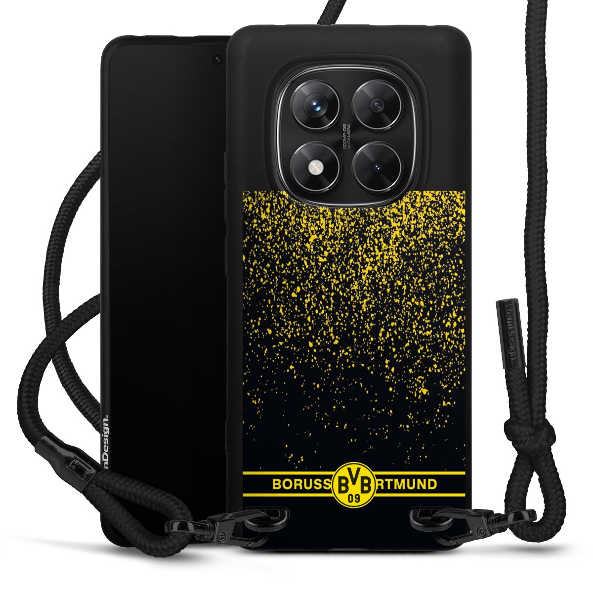 The matt black silicone case is made of flexible TPU (thermoplastic polyurethane) and offers robust protection. The durable, unbreakable material makes the cover flexible and dimensionally stable at the same time. The matte surface makes your design stand out more and is less susceptible to fingerprints and dirt. The stylish trend accessory fits comfortably in the hand and is perfectly complemented by the fabric (polyester) mobile phone strap. The braided fabric strap is approx. 1.70 metres long with a diameter of approx. 0.5 cm. Due to the special knotting technique, the length of the strap can be adjusted by simply pulling it, so that you can adapt it individually to your wishes. The practical case to wear around your neck is available with the fabric strap in black. As a little icing on the cake, we have provided the strap with a chic metal fastener in matt black. The strap is securely fastened to the case with loops made of high-quality genuine leather and press studs. The ends of the fabric strap are covered with metallic end caps and thus protected from fraying.
