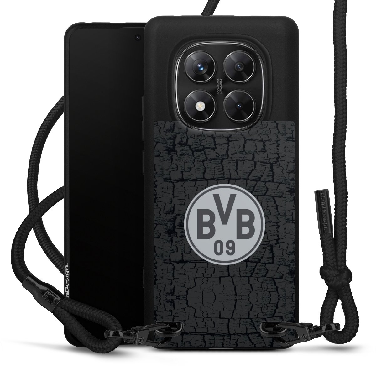 The matt black silicone case is made of flexible TPU (thermoplastic polyurethane) and offers robust protection. The durable, unbreakable material makes the cover flexible and dimensionally stable at the same time. The matte surface makes your design stand out more and is less susceptible to fingerprints and dirt. The stylish trend accessory fits comfortably in the hand and is perfectly complemented by the fabric (polyester) mobile phone strap. The braided fabric strap is approx. 1.70 metres long with a diameter of approx. 0.5 cm. Due to the special knotting technique, the length of the strap can be adjusted by simply pulling it, so that you can adapt it individually to your wishes. The practical case to wear around your neck is available with the fabric strap in black. As a little icing on the cake, we have provided the strap with a chic metal fastener in matt black. The strap is securely fastened to the case with loops made of high-quality genuine leather and press studs. The ends of the fabric strap are covered with metallic end caps and thus protected from fraying.