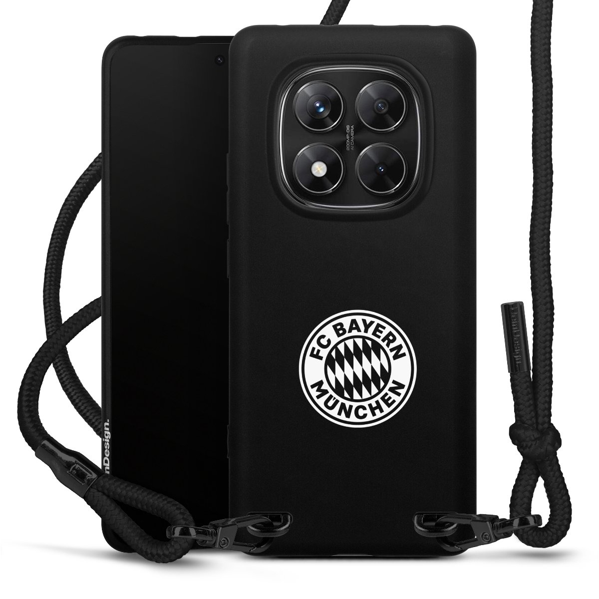 The matt black silicone case is made of flexible TPU (thermoplastic polyurethane) and offers robust protection. The durable, unbreakable material makes the cover flexible and dimensionally stable at the same time. The matte surface makes your design stand out more and is less susceptible to fingerprints and dirt. The stylish trend accessory fits comfortably in the hand and is perfectly complemented by the fabric (polyester) mobile phone strap. The braided fabric strap is approx. 1.70 metres long with a diameter of approx. 0.5 cm. Due to the special knotting technique, the length of the strap can be adjusted by simply pulling it, so that you can adapt it individually to your wishes. The practical case to wear around your neck is available with the fabric strap in black. As a little icing on the cake, we have provided the strap with a chic metal fastener in matt black. The strap is securely fastened to the case with loops made of high-quality genuine leather and press studs. The ends of the fabric strap are covered with metallic end caps and thus protected from fraying.