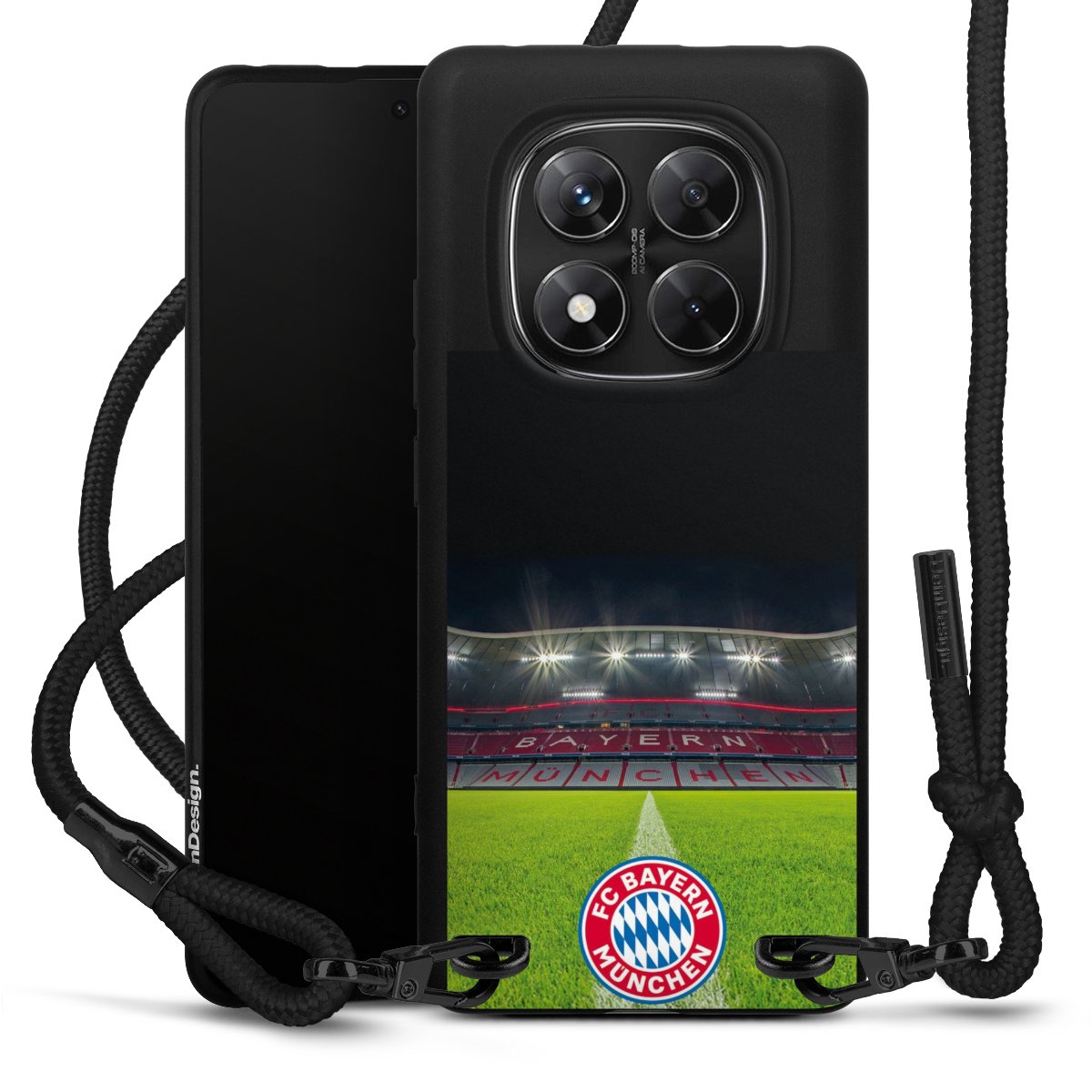 The matt black silicone case is made of flexible TPU (thermoplastic polyurethane) and offers robust protection. The durable, unbreakable material makes the cover flexible and dimensionally stable at the same time. The matte surface makes your design stand out more and is less susceptible to fingerprints and dirt. The stylish trend accessory fits comfortably in the hand and is perfectly complemented by the fabric (polyester) mobile phone strap. The braided fabric strap is approx. 1.70 metres long with a diameter of approx. 0.5 cm. Due to the special knotting technique, the length of the strap can be adjusted by simply pulling it, so that you can adapt it individually to your wishes. The practical case to wear around your neck is available with the fabric strap in black. As a little icing on the cake, we have provided the strap with a chic metal fastener in matt black. The strap is securely fastened to the case with loops made of high-quality genuine leather and press studs. The ends of the fabric strap are covered with metallic end caps and thus protected from fraying.