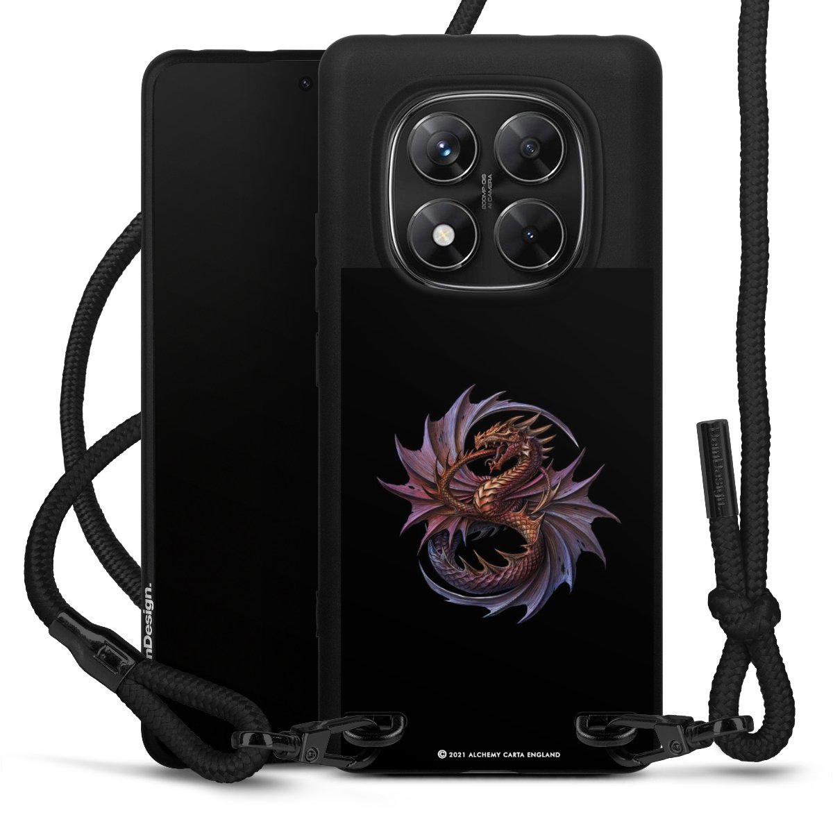 The matt black silicone case is made of flexible TPU (thermoplastic polyurethane) and offers robust protection. The durable, unbreakable material makes the cover flexible and dimensionally stable at the same time. The matte surface makes your design stand out more and is less susceptible to fingerprints and dirt. The stylish trend accessory fits comfortably in the hand and is perfectly complemented by the fabric (polyester) mobile phone strap. The braided fabric strap is approx. 1.70 metres long with a diameter of approx. 0.5 cm. Due to the special knotting technique, the length of the strap can be adjusted by simply pulling it, so that you can adapt it individually to your wishes. The practical case to wear around your neck is available with the fabric strap in black. As a little icing on the cake, we have provided the strap with a chic metal fastener in matt black. The strap is securely fastened to the case with loops made of high-quality genuine leather and press studs. The ends of the fabric strap are covered with metallic end caps and thus protected from fraying.