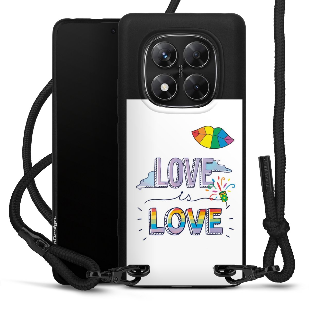 We use the solid direct print process for this phone case, which is why the print area only covers the back and the edge remains unprinted. The case to wear around your neck can be ordered unprinted, fully printed, or partially printed. For your design, either choose one of our exclusive shop motifs or get creative and create your own design, for example with photos and overlays. Design your own personal trend accessory and make an individual statement on the streets!