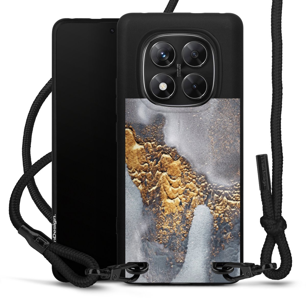 Pure Black: Phone case, fabric strap and metal details in stylish matt black.