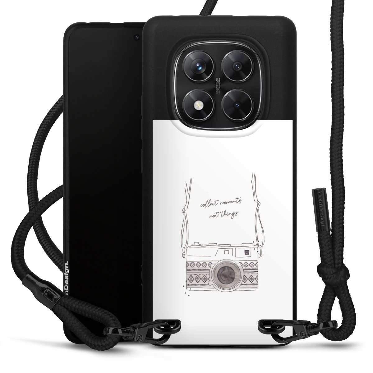 Pure Black: Phone case, fabric strap and metal details in stylish matt black.
