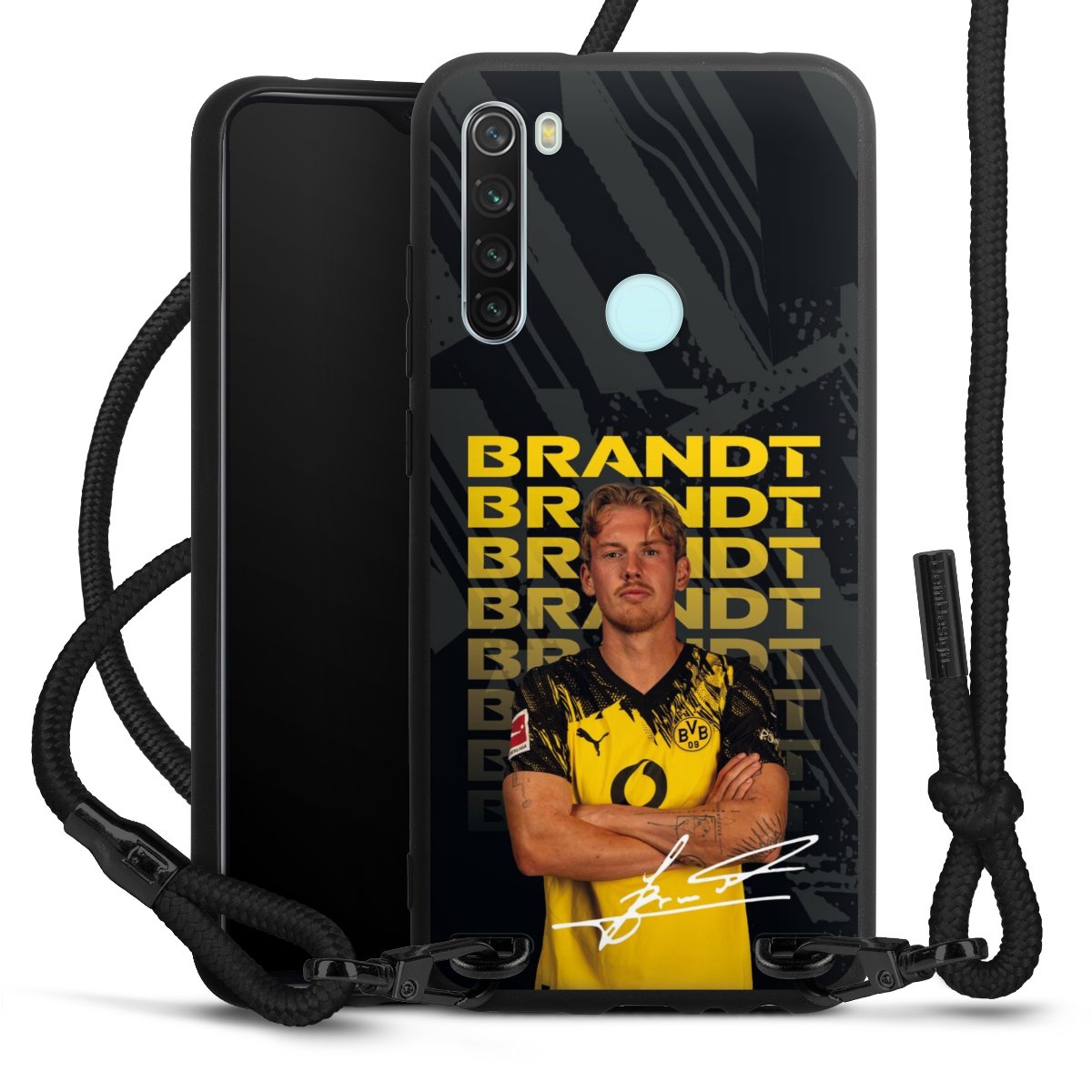 The matt black silicone case is made of flexible TPU (thermoplastic polyurethane) and offers robust protection. The durable, unbreakable material makes the cover flexible and dimensionally stable at the same time. The matte surface makes your design stand out more and is less susceptible to fingerprints and dirt. The stylish trend accessory fits comfortably in the hand and is perfectly complemented by the fabric (polyester) mobile phone strap. The braided fabric strap is approx. 1.70 metres long with a diameter of approx. 0.5 cm. Due to the special knotting technique, the length of the strap can be adjusted by simply pulling it, so that you can adapt it individually to your wishes. The practical case to wear around your neck is available with the fabric strap in black. As a little icing on the cake, we have provided the strap with a chic metal fastener in matt black. The strap is securely fastened to the case with loops made of high-quality genuine leather and press studs. The ends of the fabric strap are covered with metallic end caps and thus protected from fraying.