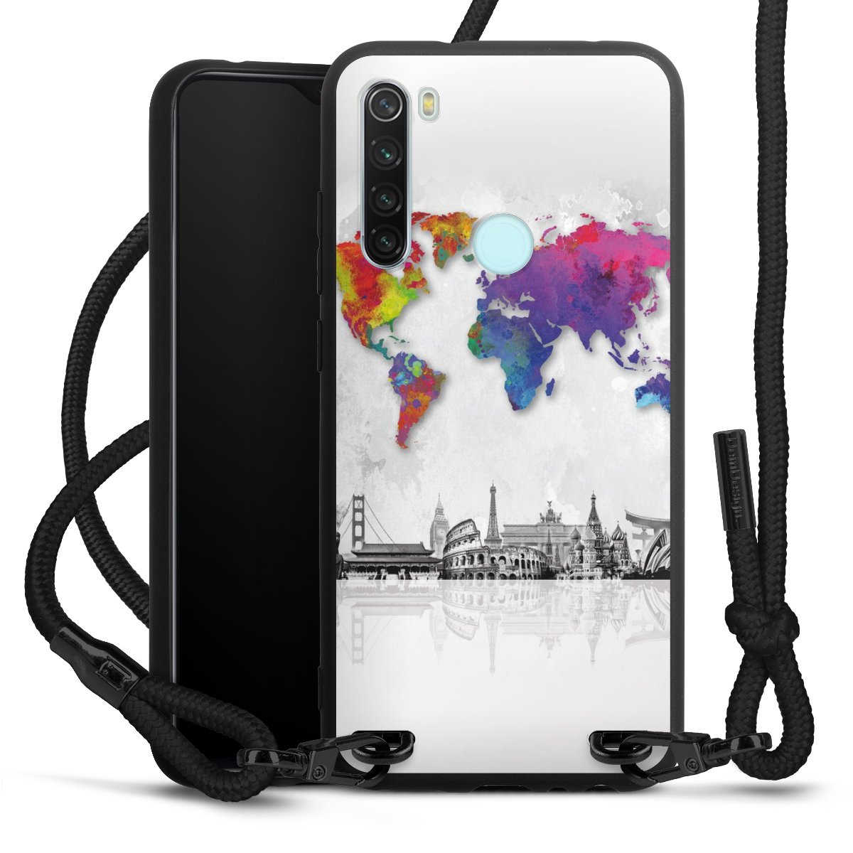 We use the solid direct print process for this phone case, which is why the print area only covers the back and the edge remains unprinted. The case to wear around your neck can be ordered unprinted, fully printed, or partially printed. For your design, either choose one of our exclusive shop motifs or get creative and create your own design, for example with photos and overlays. Design your own personal trend accessory and make an individual statement on the streets!