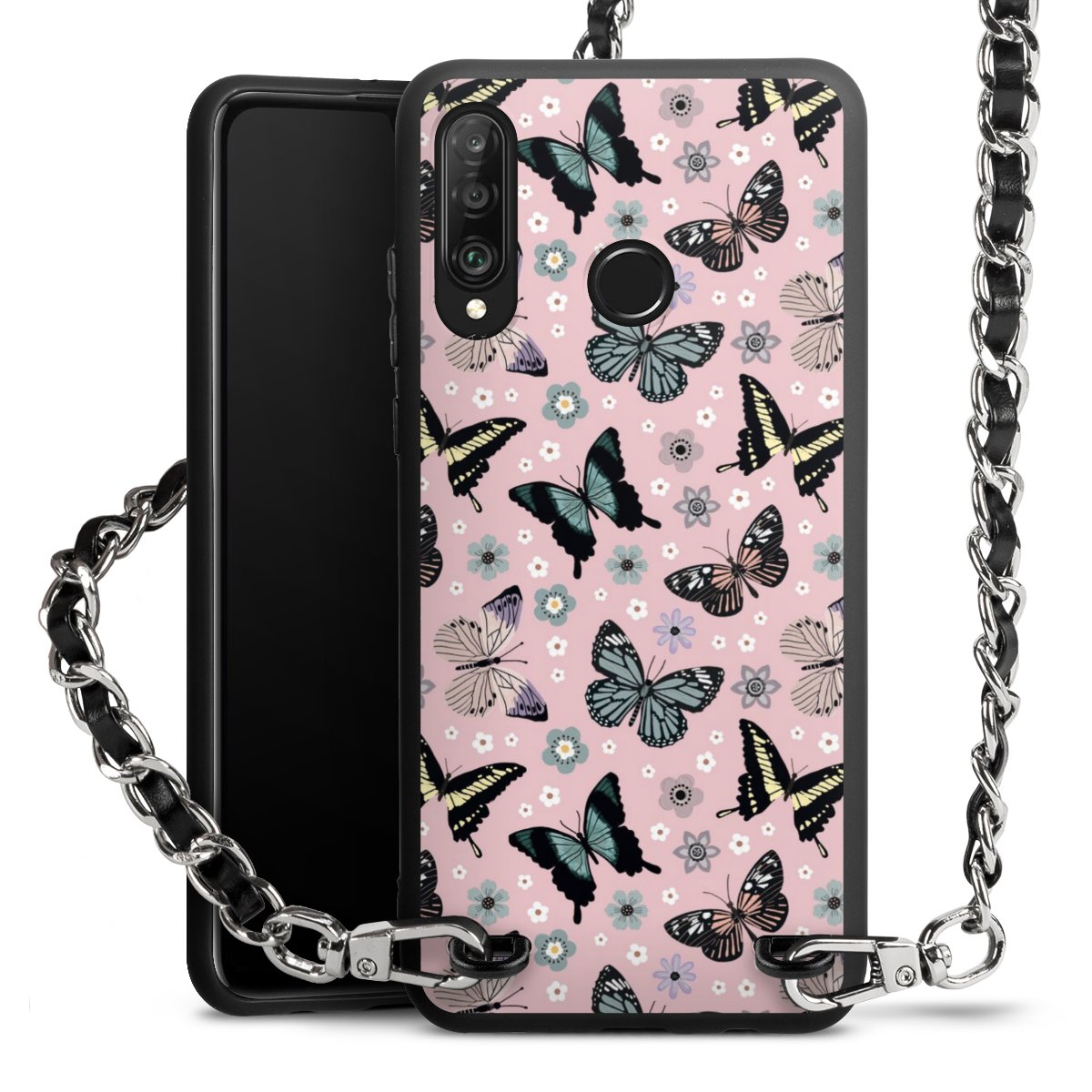 Pure Black: Phone case, fabric strap and metal details in stylish matt black.