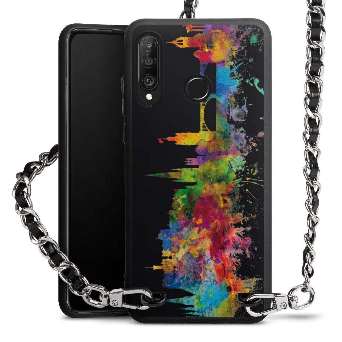 We use the solid direct print process for this phone case, which is why the print area only covers the back and the edge remains unprinted. The case to wear around your neck can be ordered unprinted, fully printed, or partially printed. For your design, either choose one of our exclusive shop motifs or get creative and create your own design, for example with photos and overlays. Design your own personal trend accessory and make an individual statement on the streets!