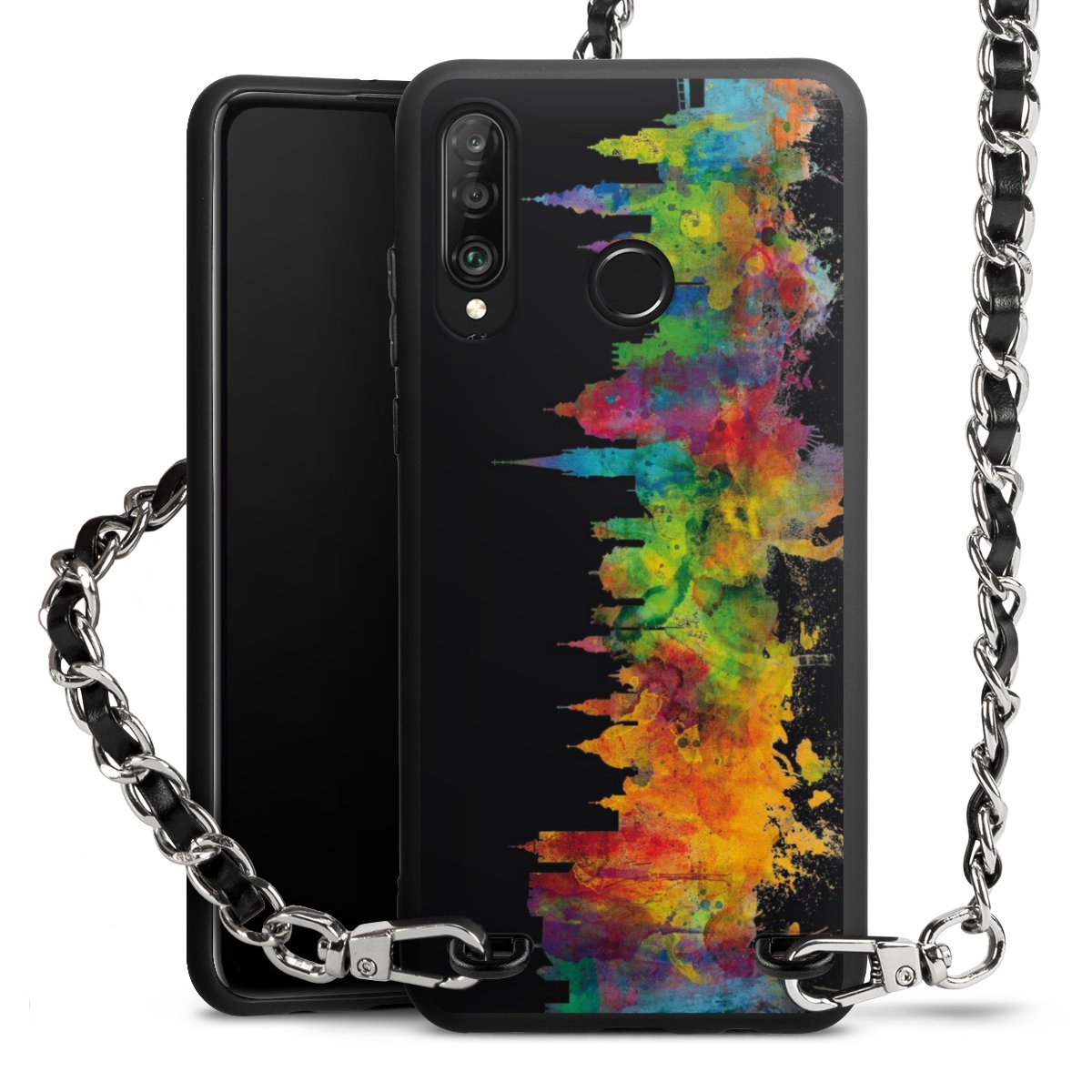 We use the solid direct print process for this phone case, which is why the print area only covers the back and the edge remains unprinted. The case to wear around your neck can be ordered unprinted, fully printed, or partially printed. For your design, either choose one of our exclusive shop motifs or get creative and create your own design, for example with photos and overlays. Design your own personal trend accessory and make an individual statement on the streets!