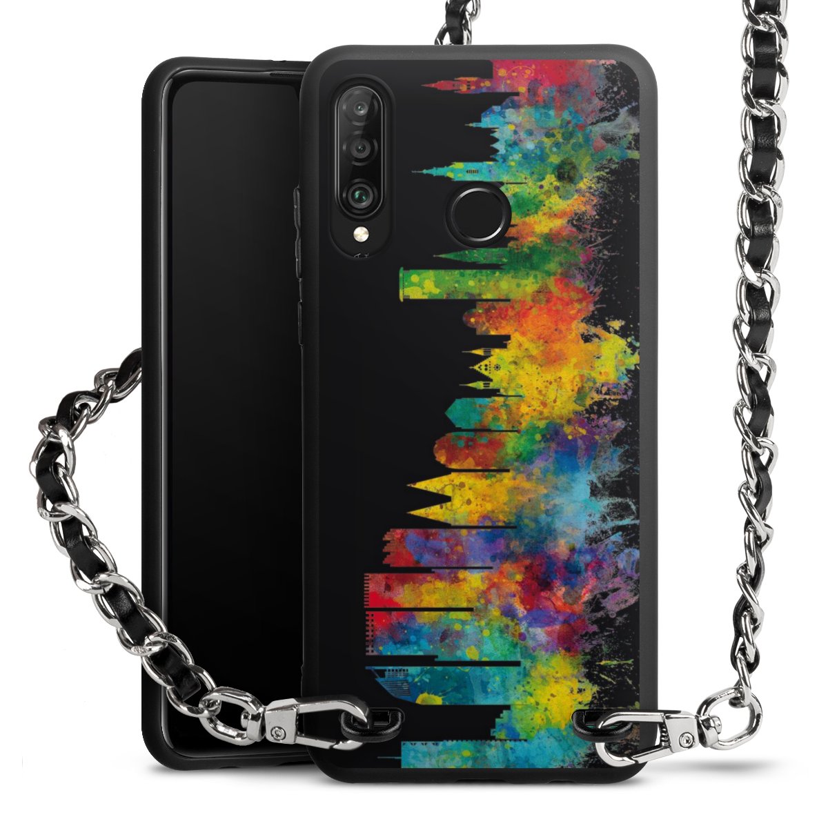 We use the solid direct print process for this phone case, which is why the print area only covers the back and the edge remains unprinted. The case to wear around your neck can be ordered unprinted, fully printed, or partially printed. For your design, either choose one of our exclusive shop motifs or get creative and create your own design, for example with photos and overlays. Design your own personal trend accessory and make an individual statement on the streets!