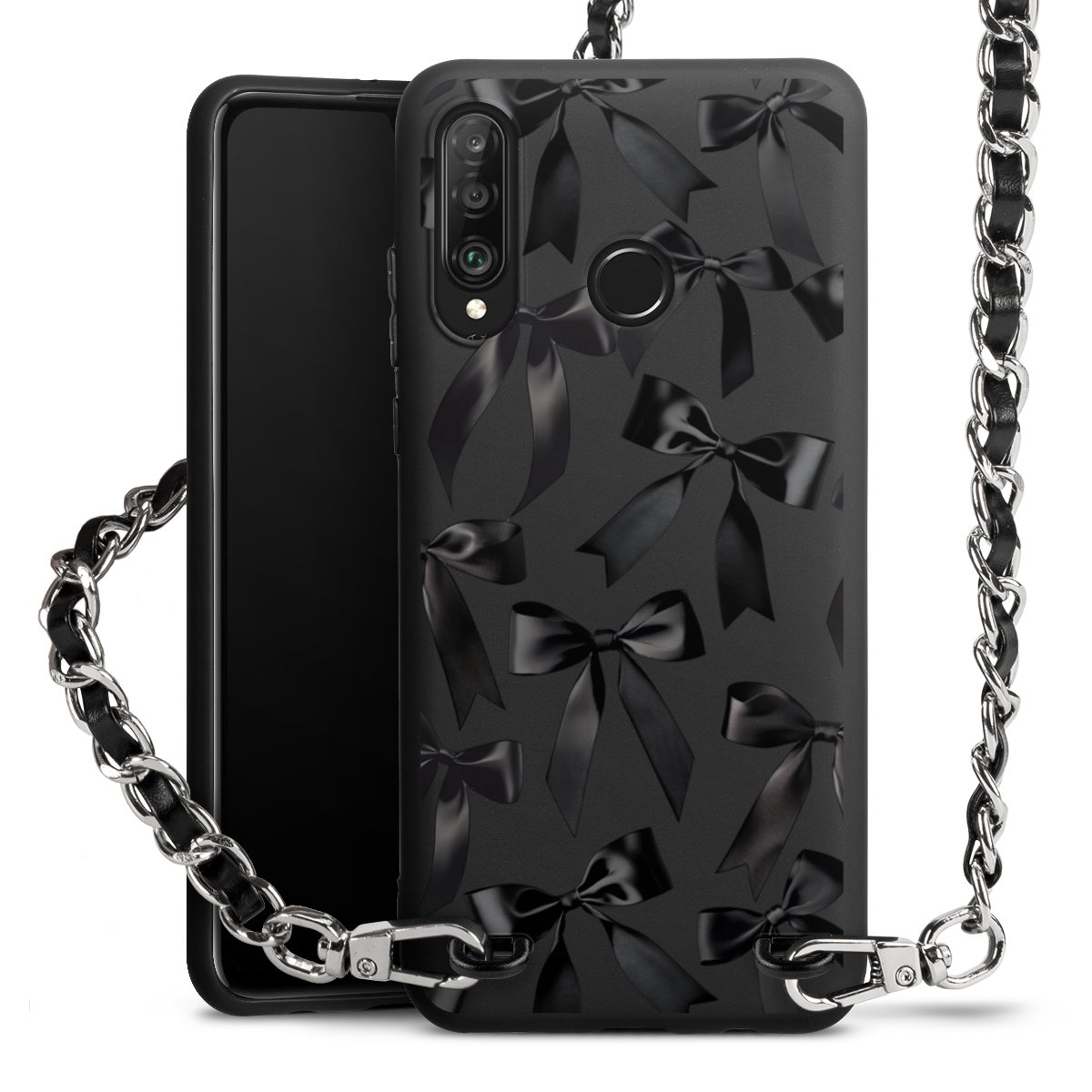 Pure Black: Phone case, fabric strap and metal details in stylish matt black.