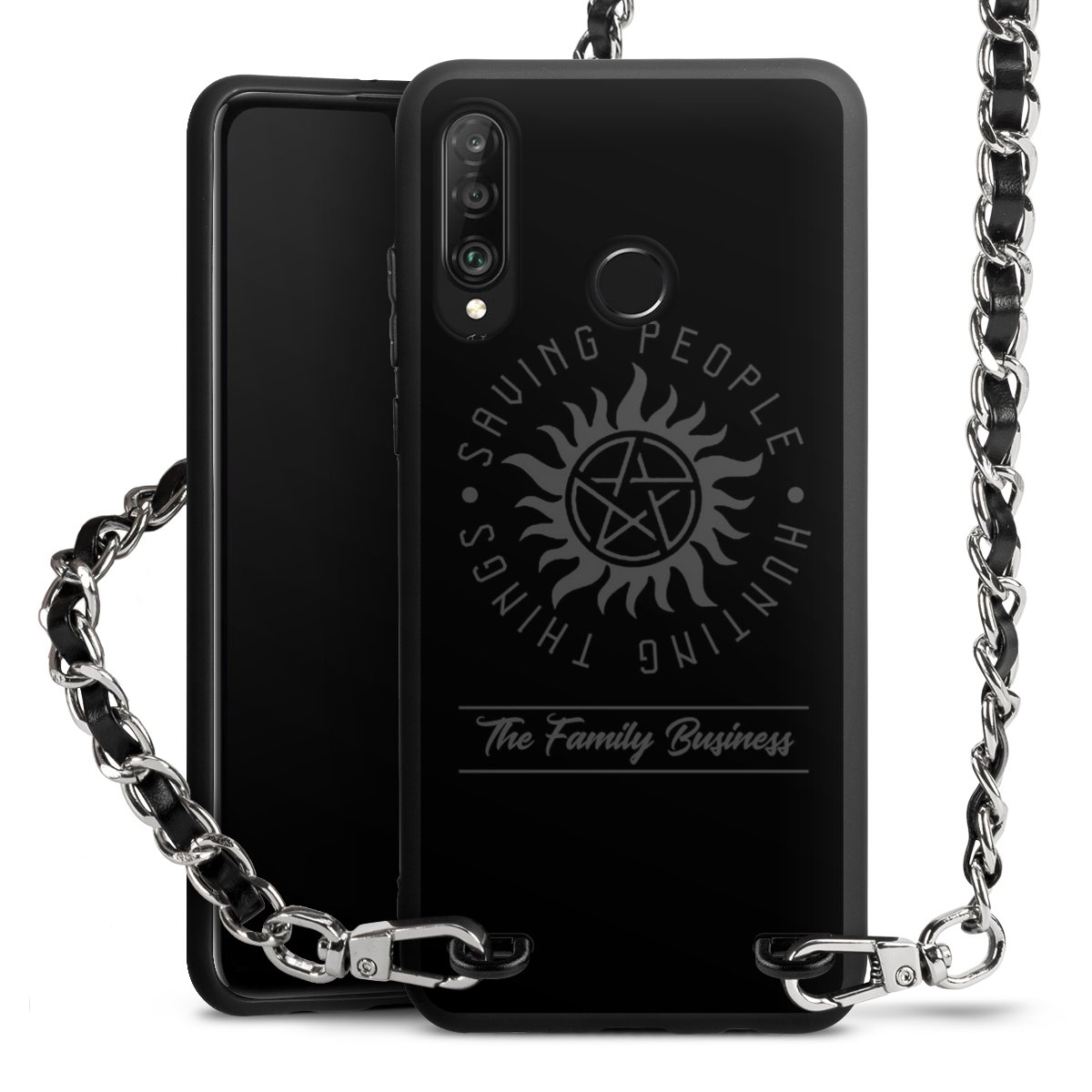 Pure Black: Phone case, fabric strap and metal details in stylish matt black.