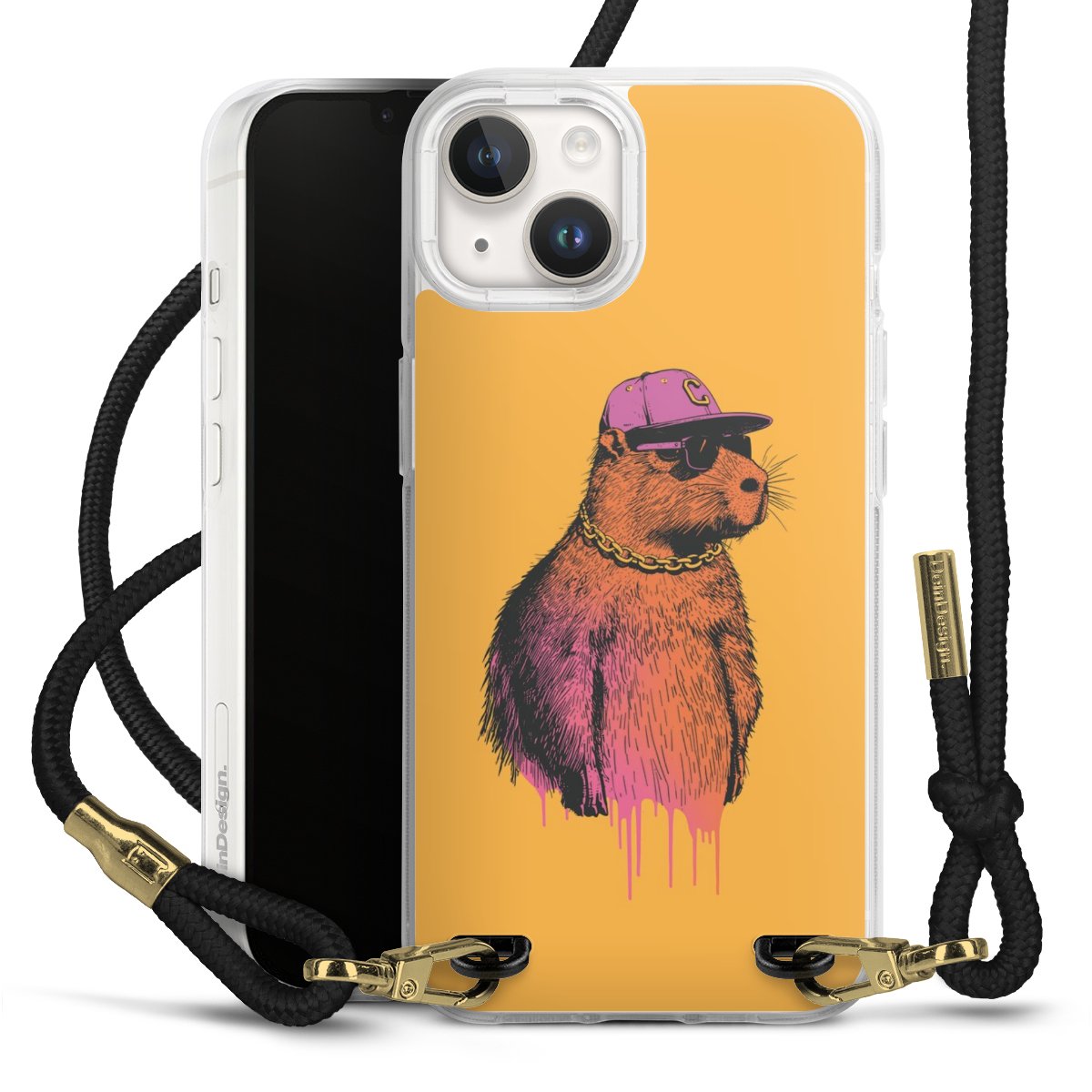 Keep your phone handy at all times, thanks to the flexible silicone case with a textile strap.