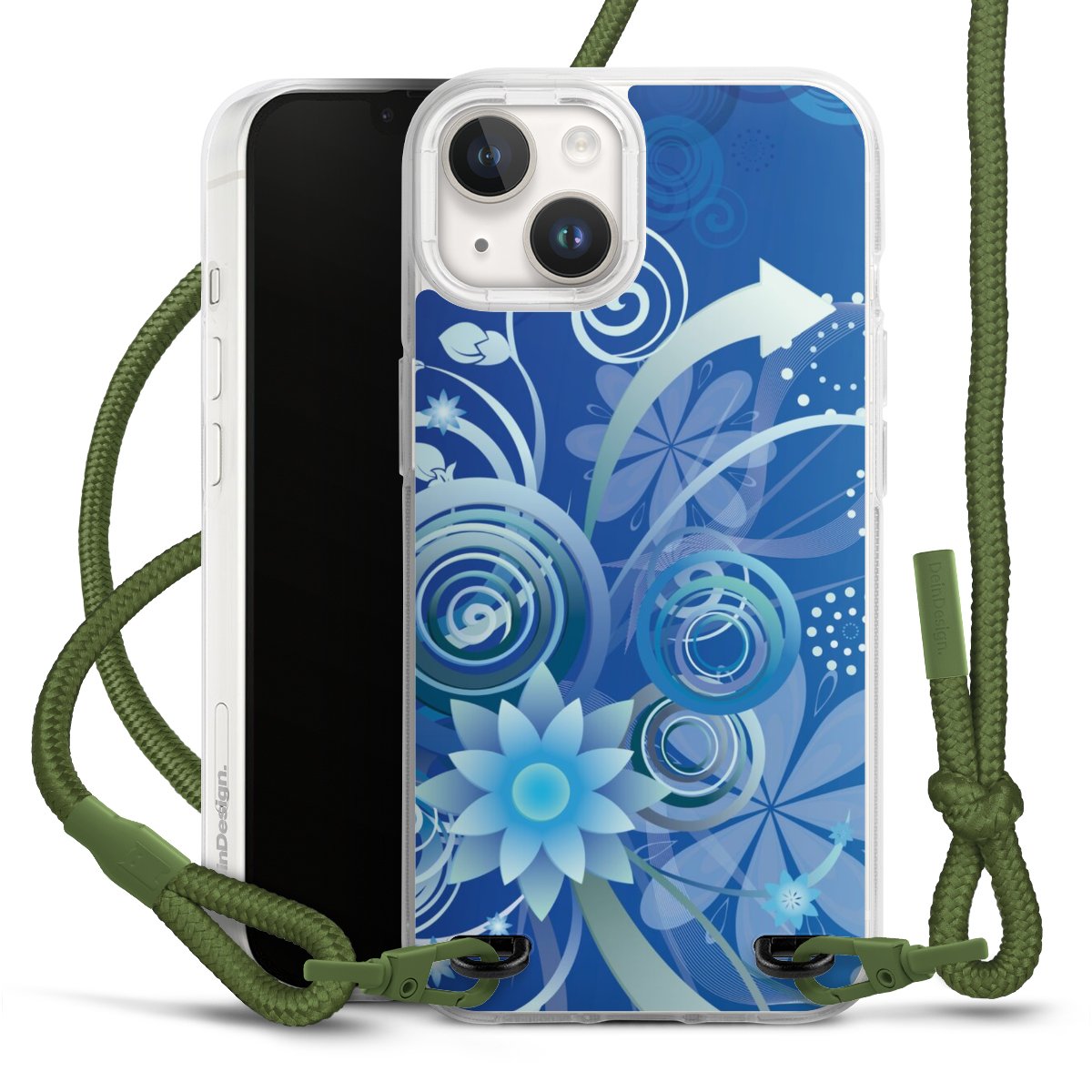Flowers and Swirls Blue