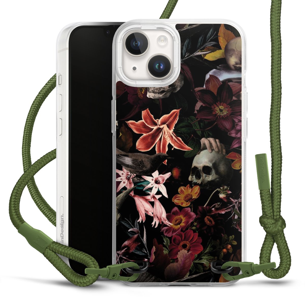 Skulls and Flowers on Dark Background