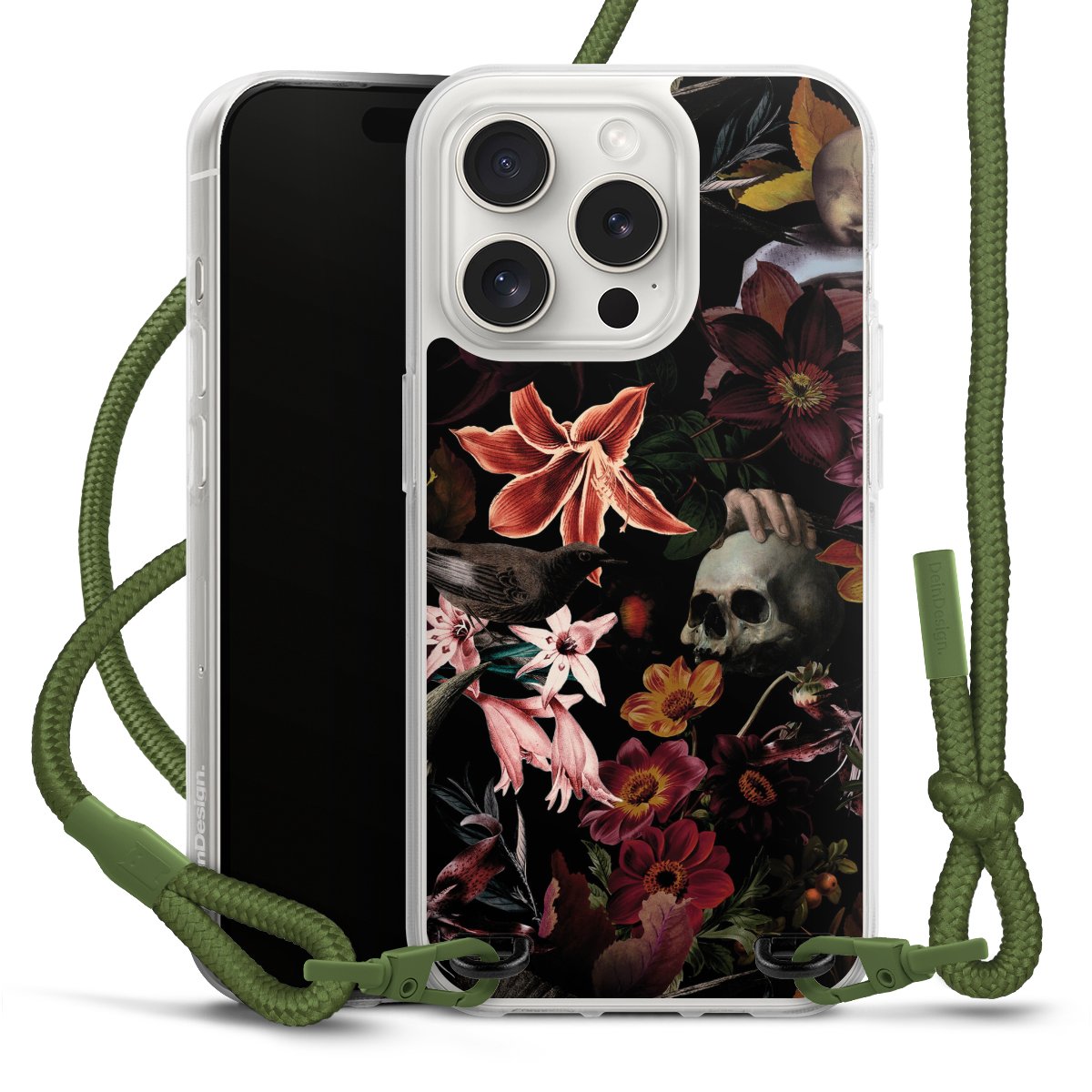 Skulls and Flowers on Dark Background
