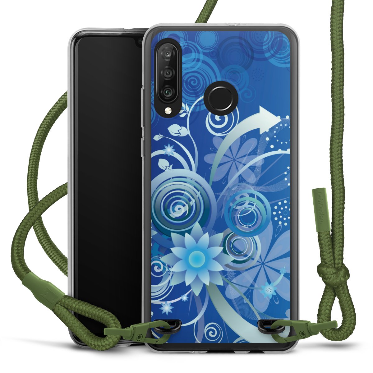 Flowers and Swirls Blue