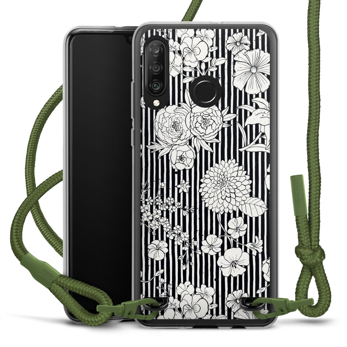 Flowers and Stripes Black and White