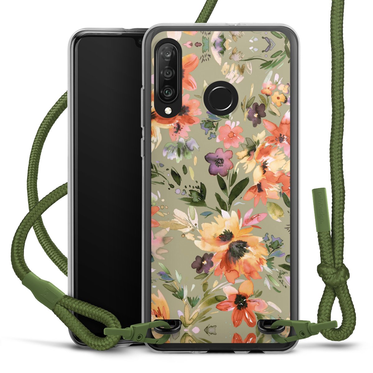 Painterly Tropical Flowers Sage Green