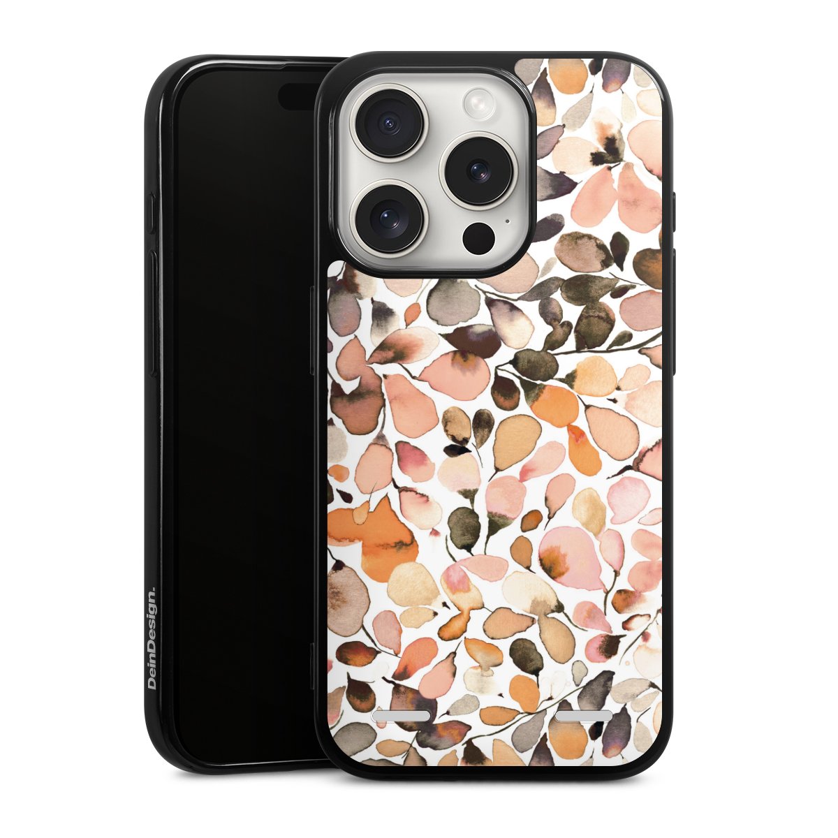 Eucalyptus Watercolor Leaves Dark Brown Autumn