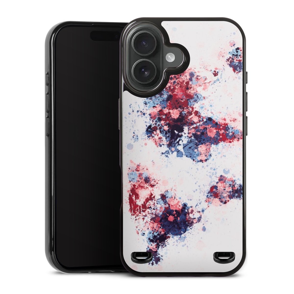 World Map Paint Splashes Blue Red