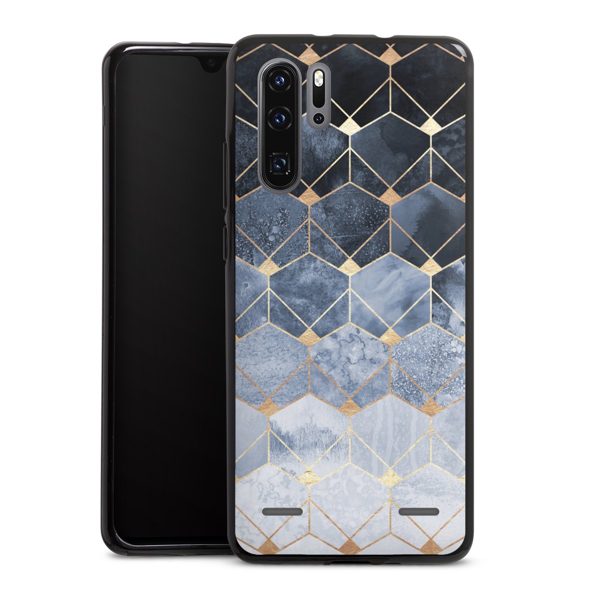 Blue Hexagons And Diamonds Gold Print