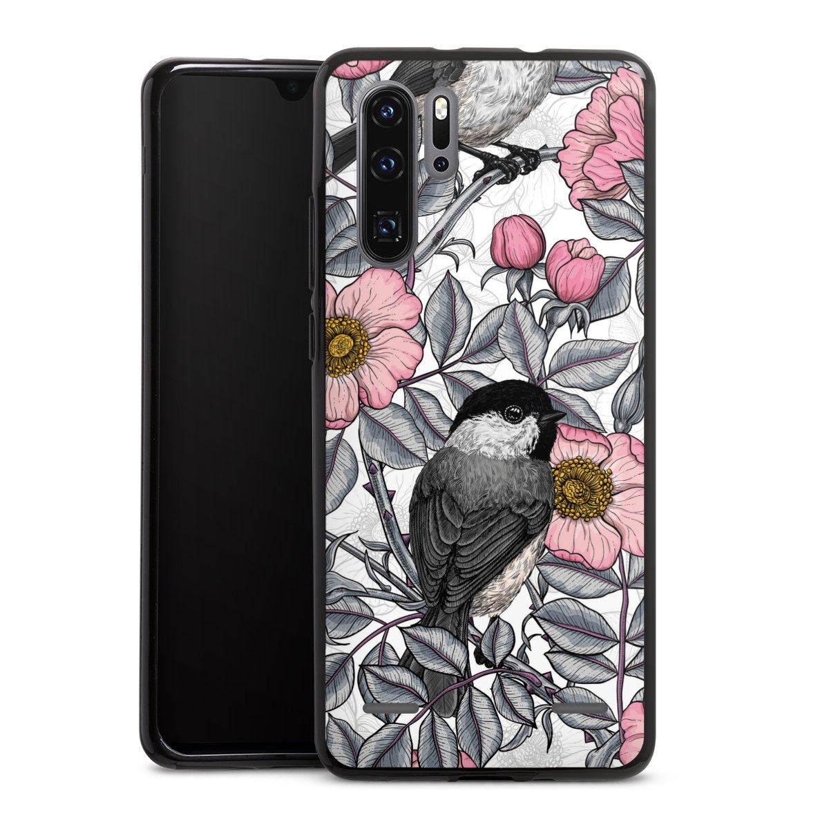 Chickadees and Wild Rose
