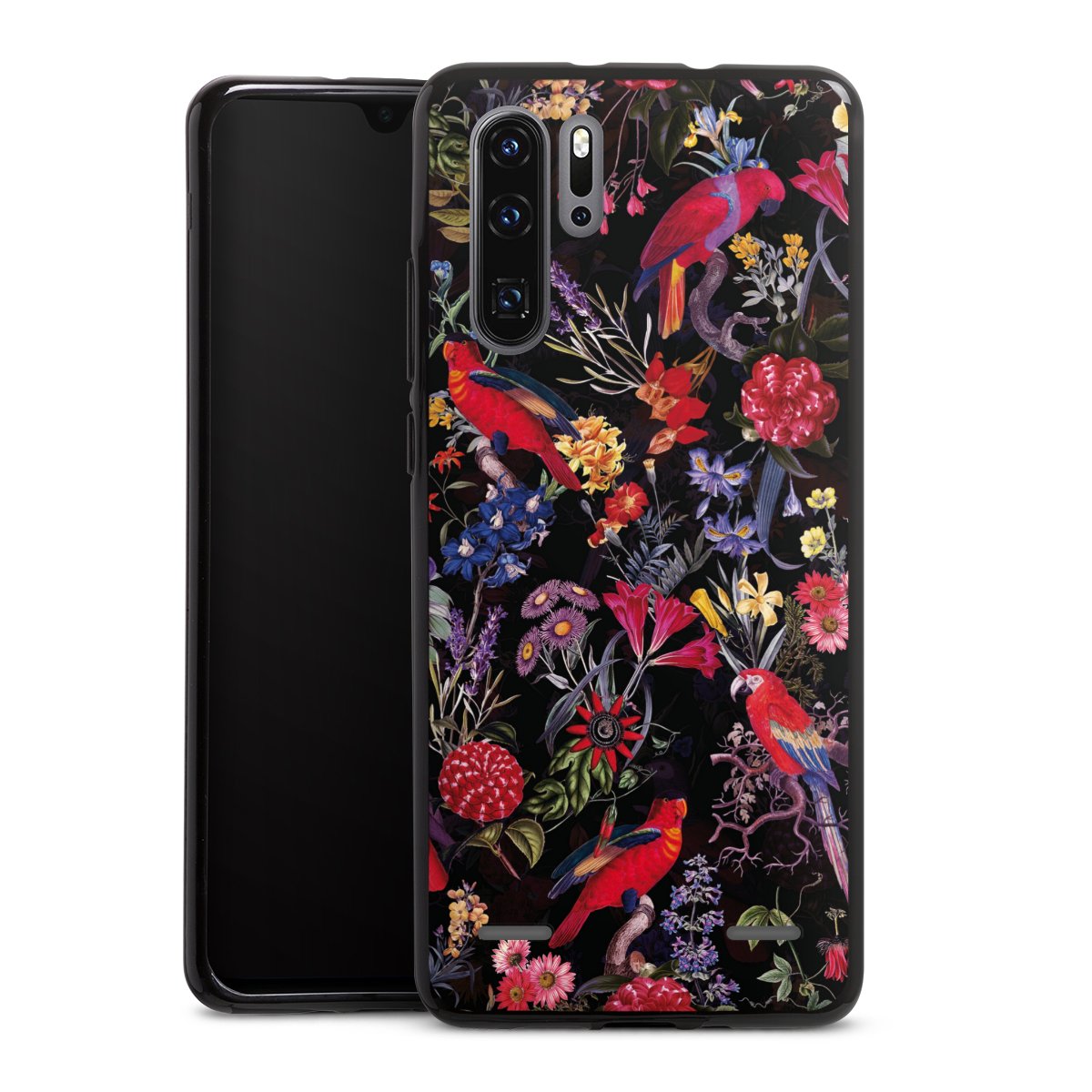 Dark Flowers and Parrots