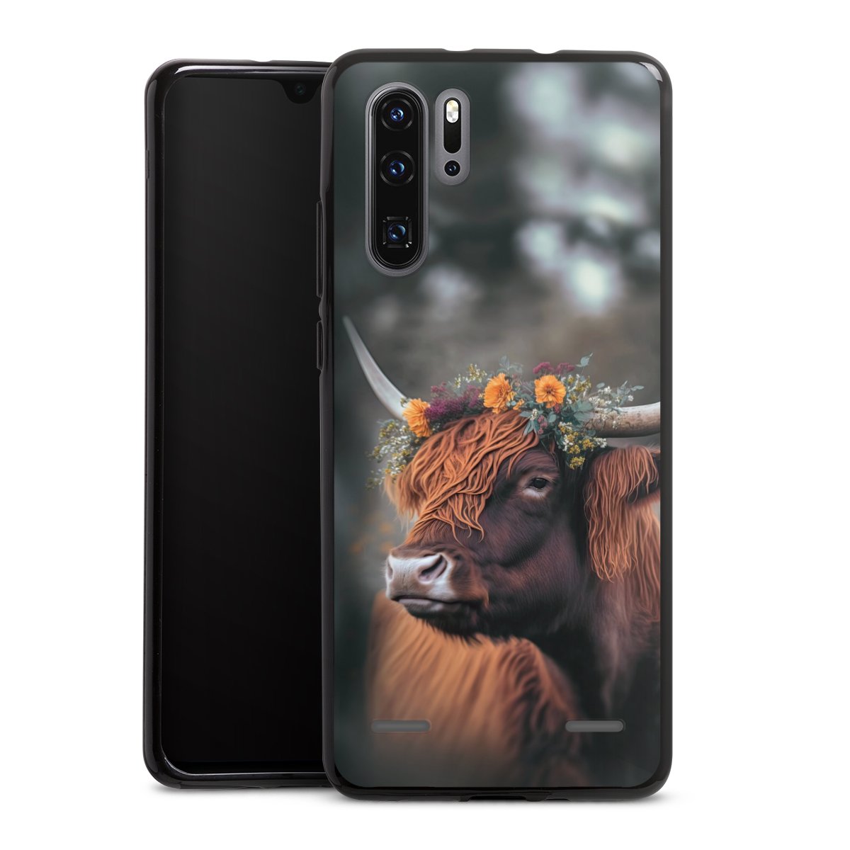 Highland Cow With Flowers with AI