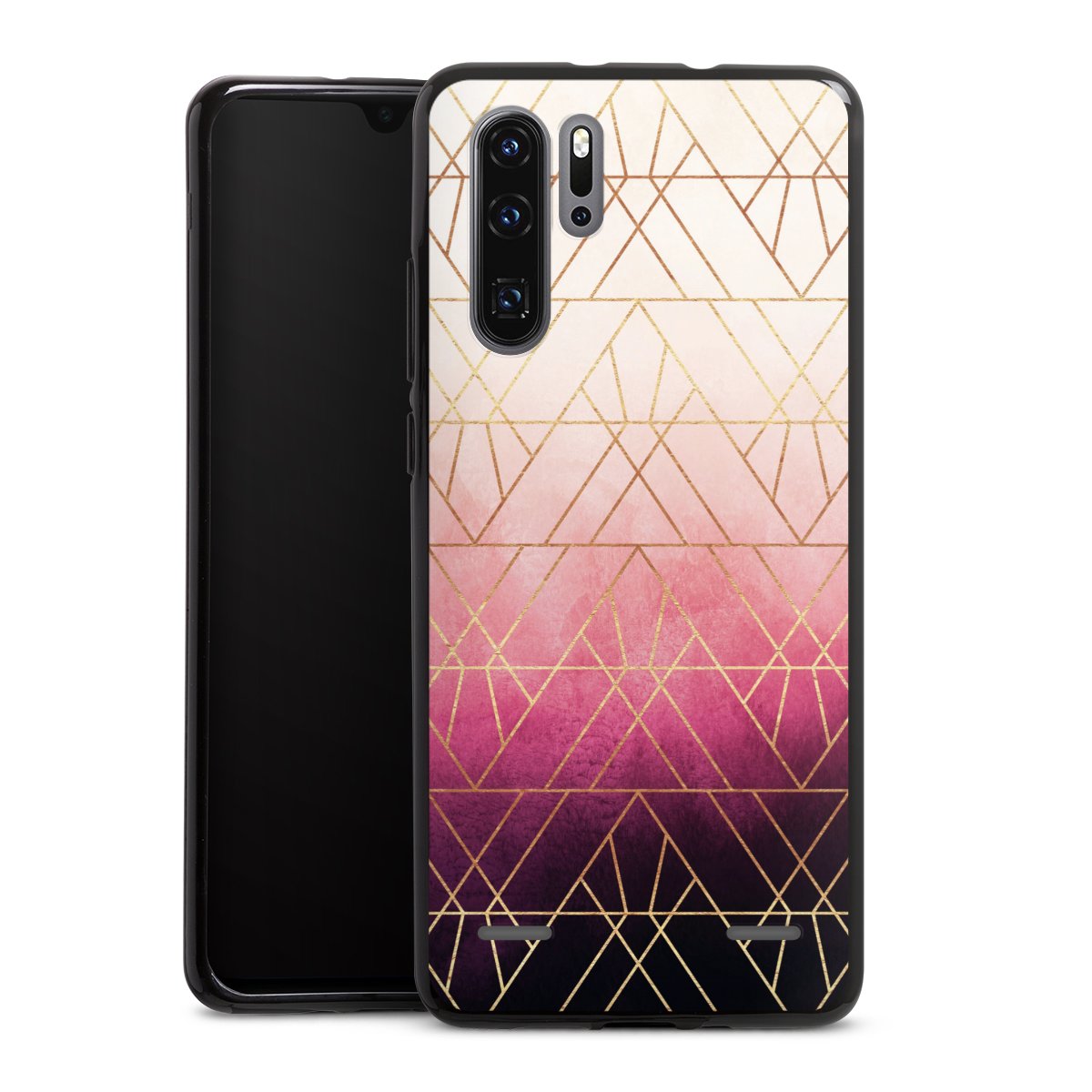 Pink Ombre Triangles Gold Print