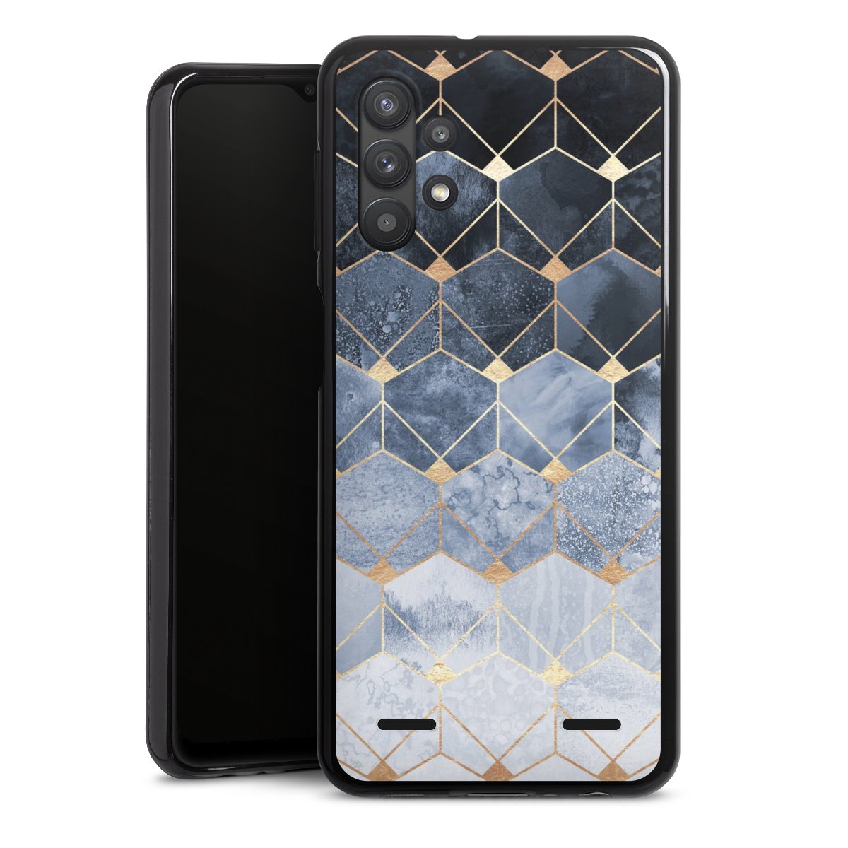 Blue Hexagons And Diamonds Gold Print