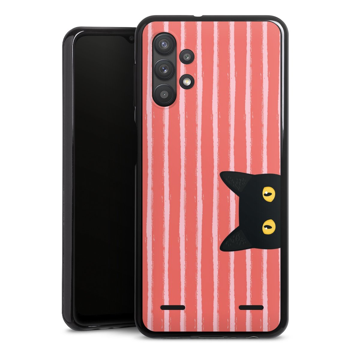 Black Cat on Orange Stripes