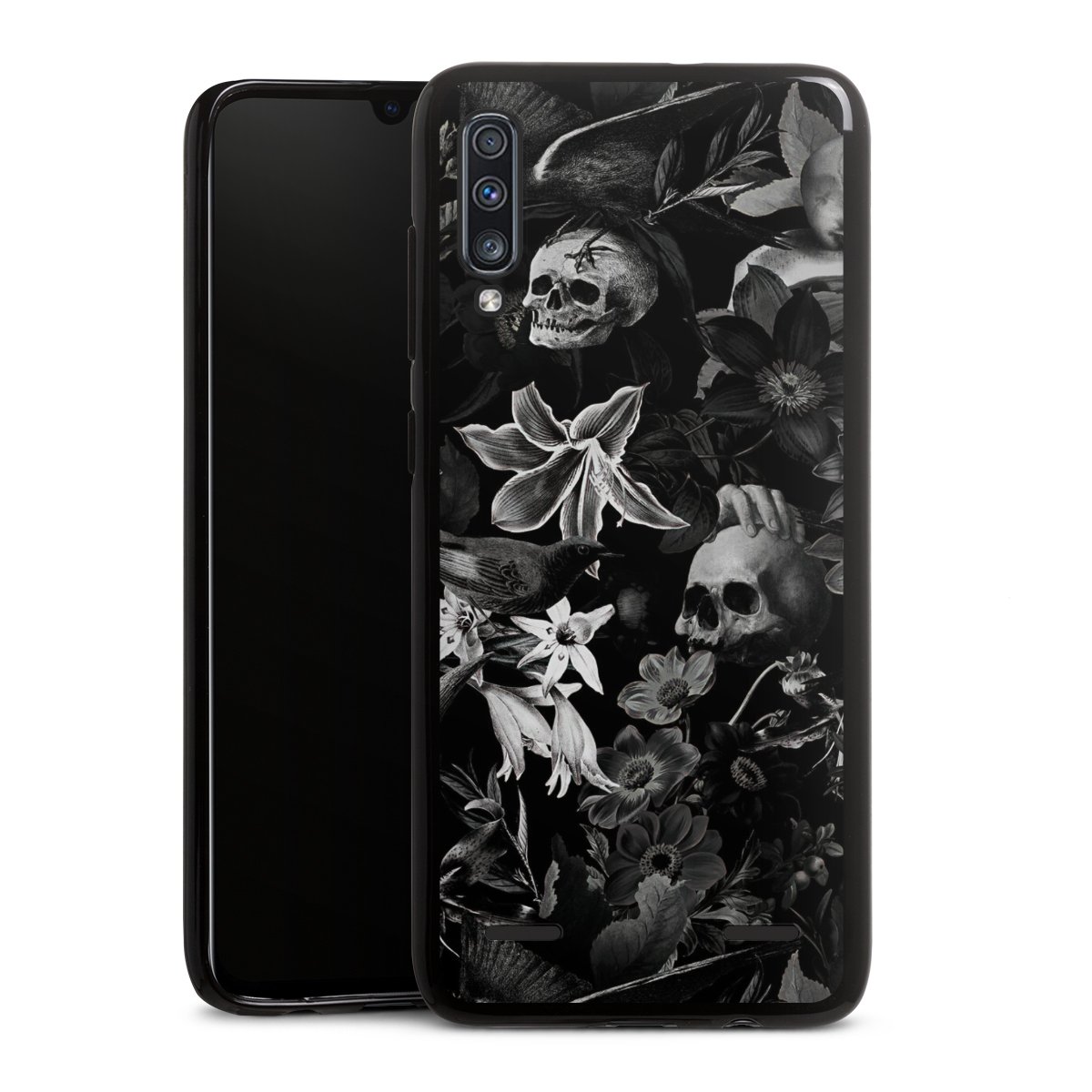 Skulls and Flowers on Black Background
