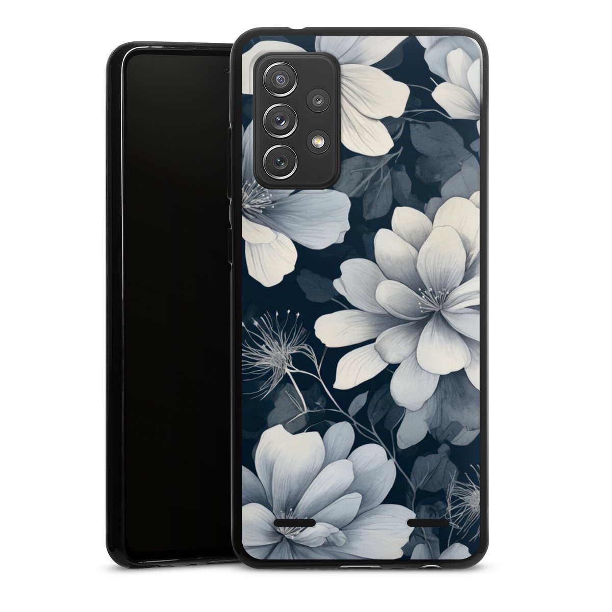 Negative Flower Blue White with AI