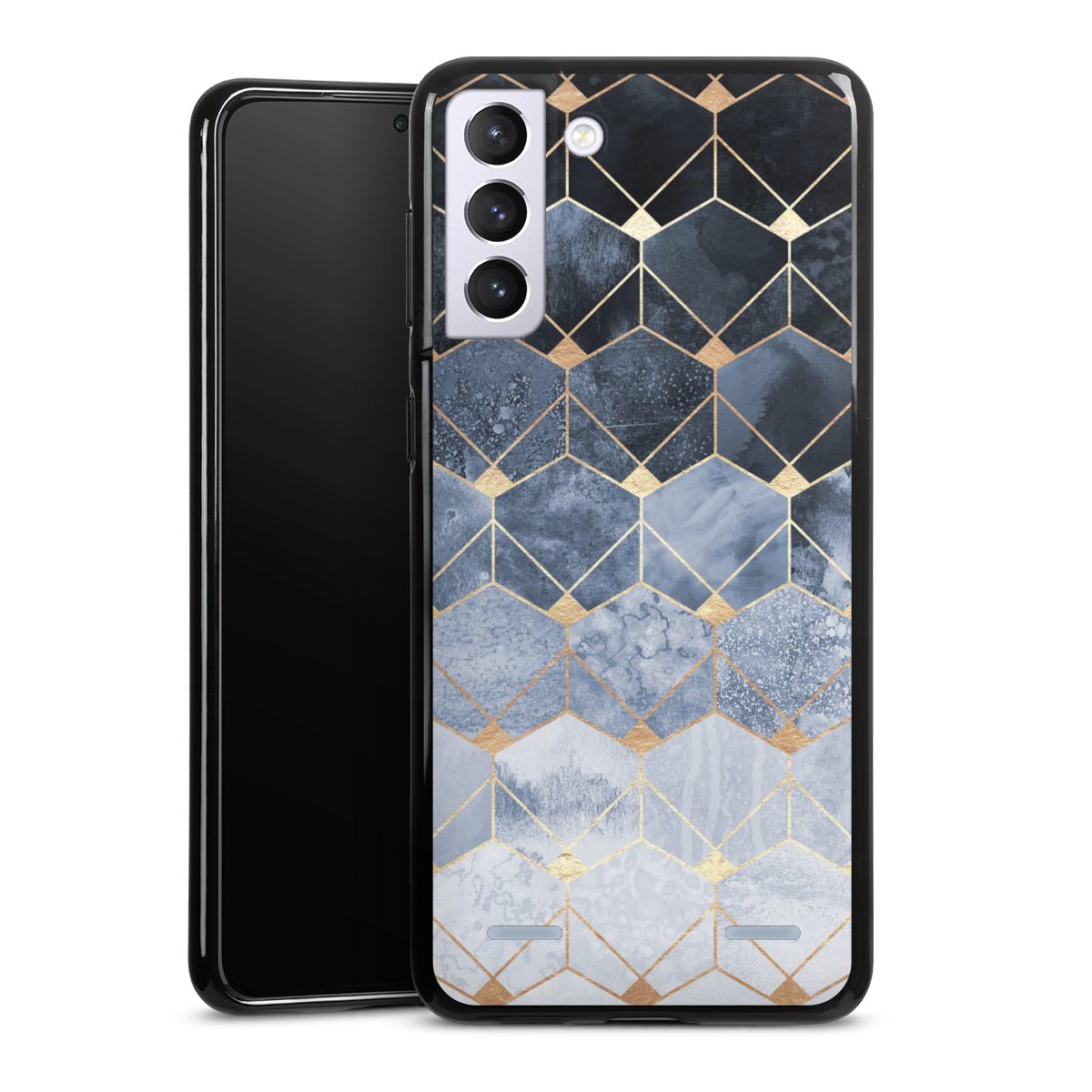 Blue Hexagons And Diamonds Gold Print