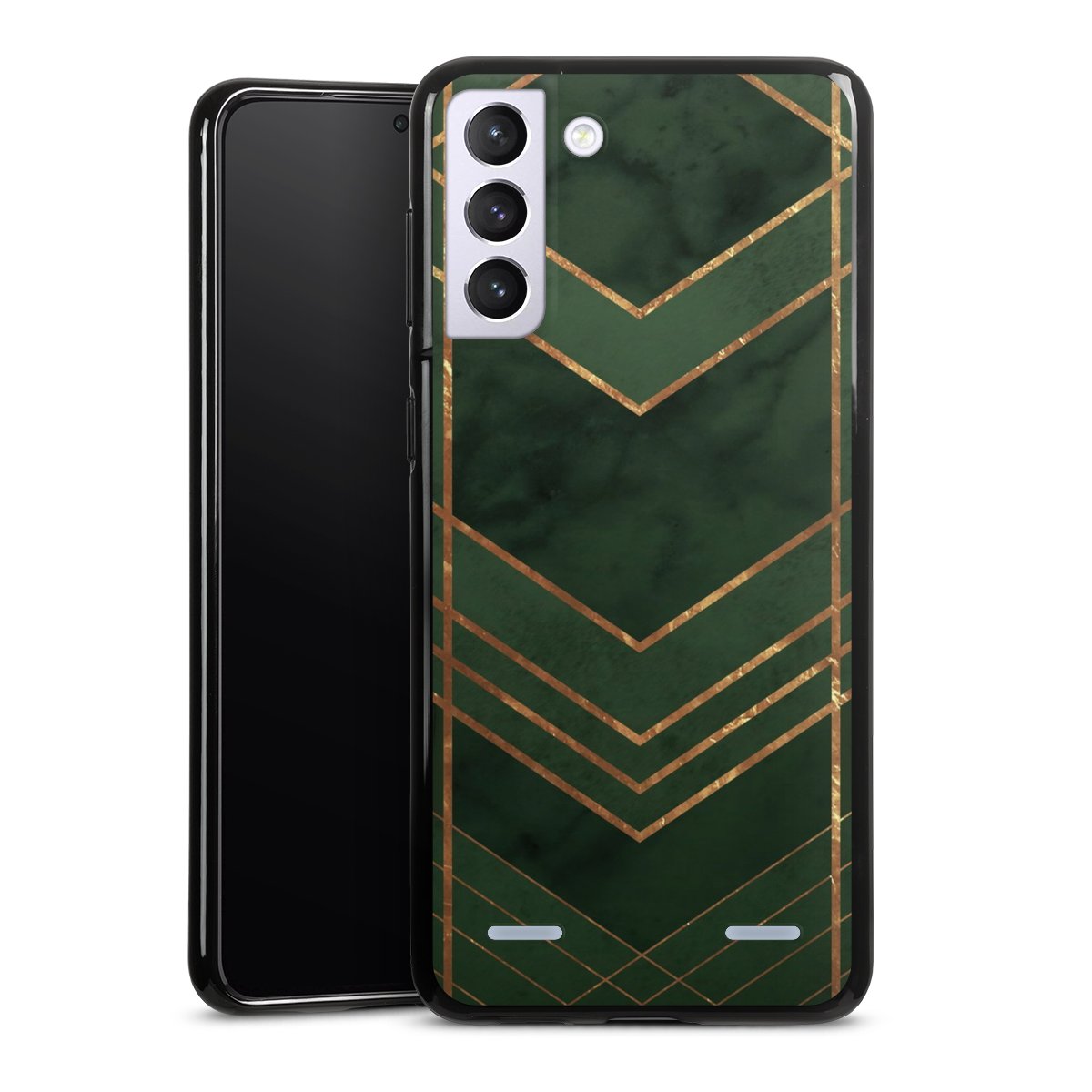 Dark Green Pattern Golden Stripes