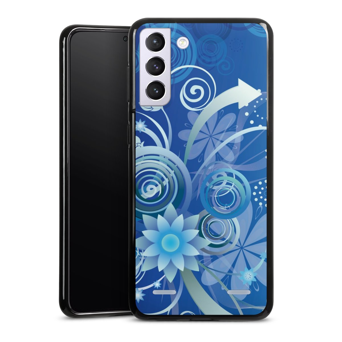 Flowers and Swirls Blue
