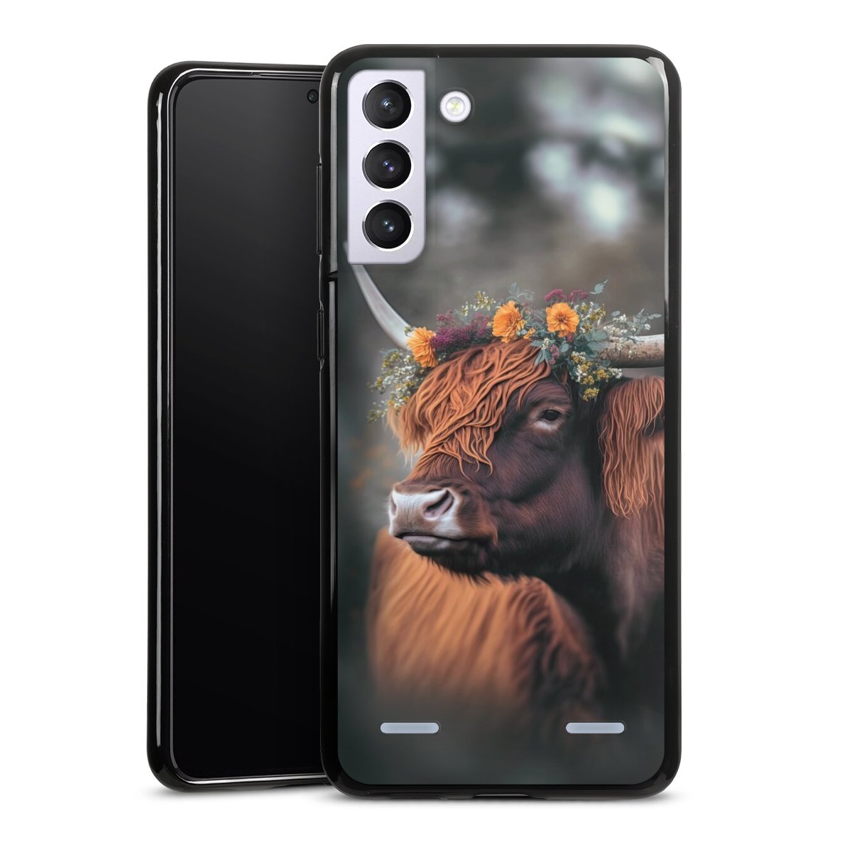 Highland Cow With Flowers with AI