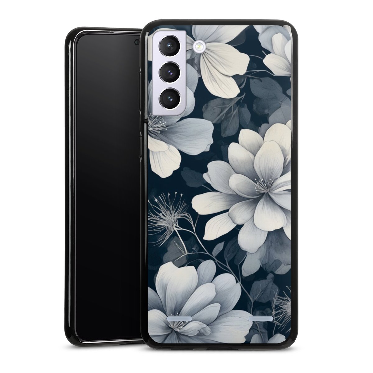 Negative Flower Blue White with AI