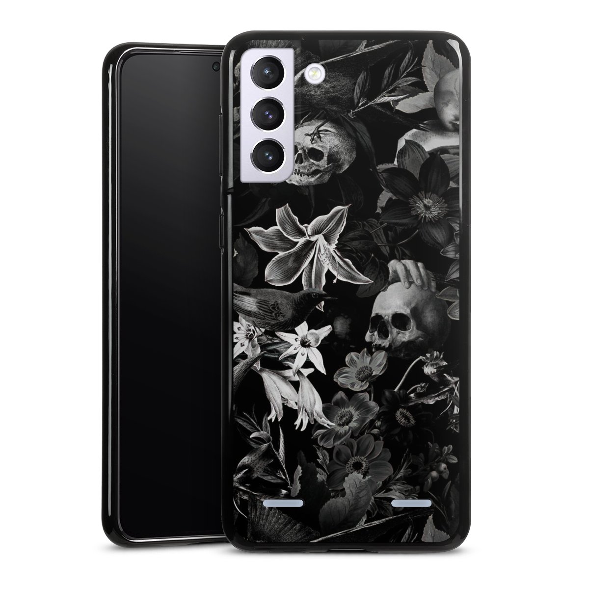 Skulls and Flowers on Black Background