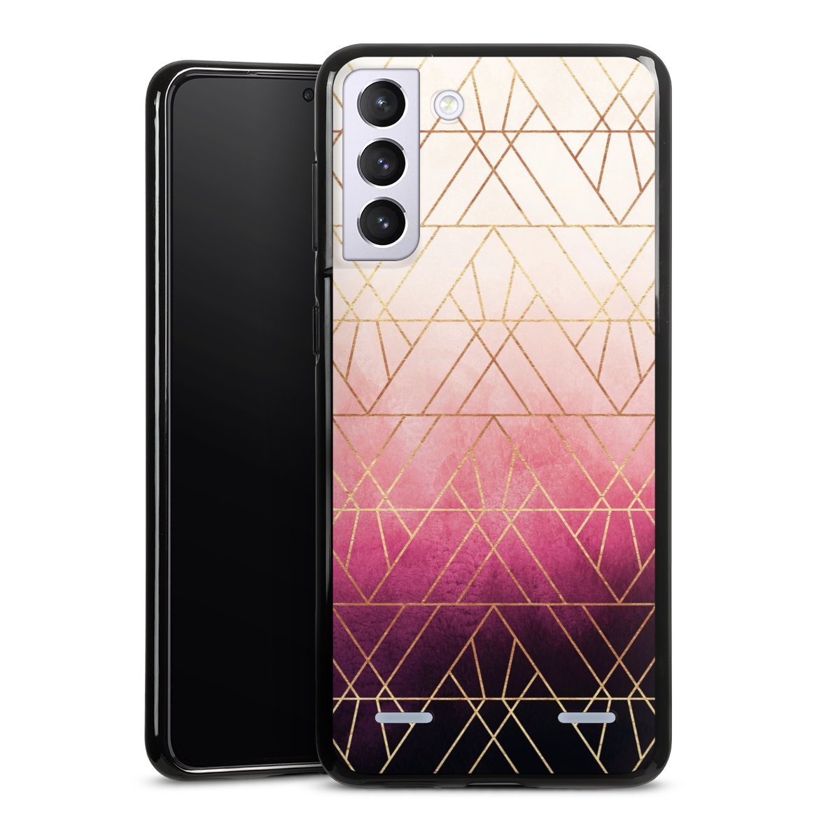 Pink Ombre Triangles Gold Print