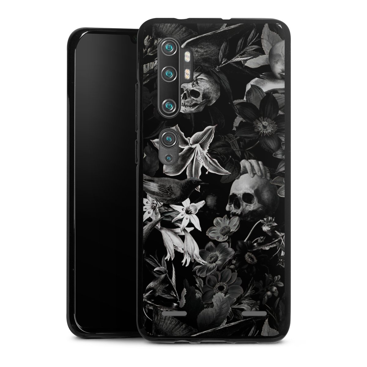 Skulls and Flowers on Black Background