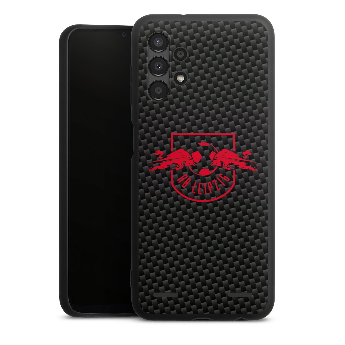 Red RB Leipzig logo on carbon look
