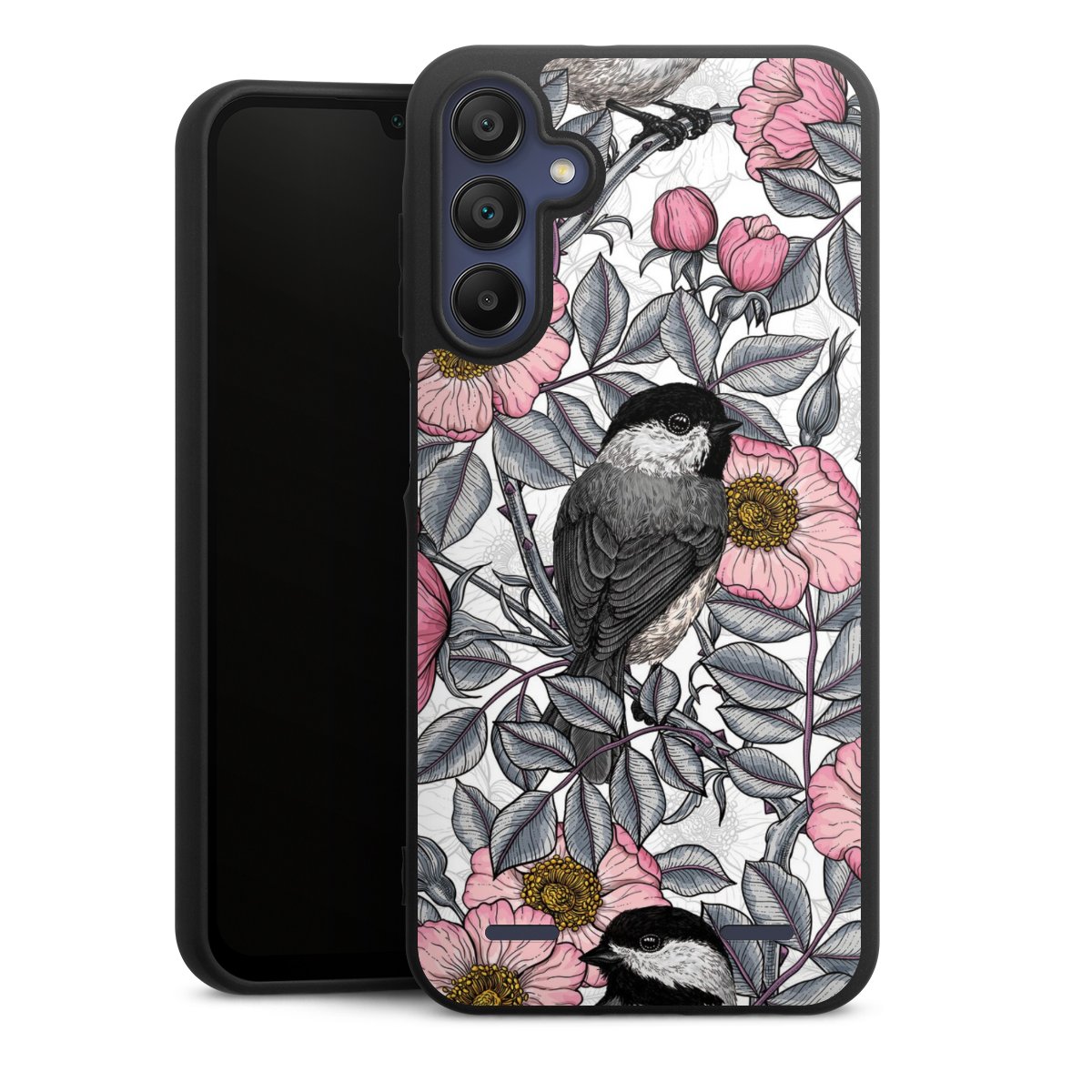 Chickadees and Wild Rose