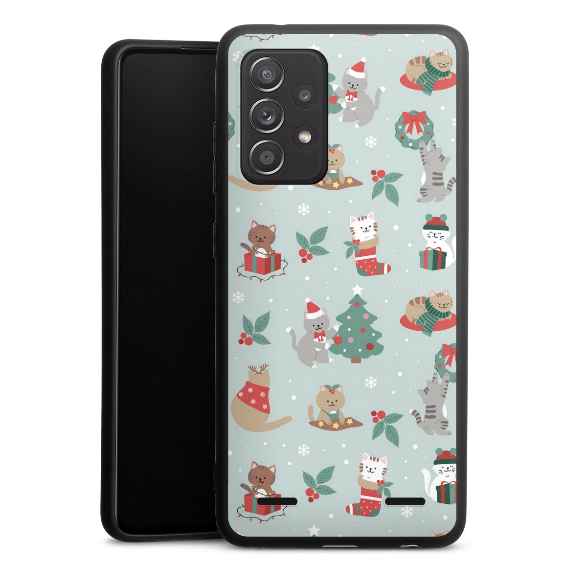 Cute Winter Wonderland Christmas Festive Cats on Teal