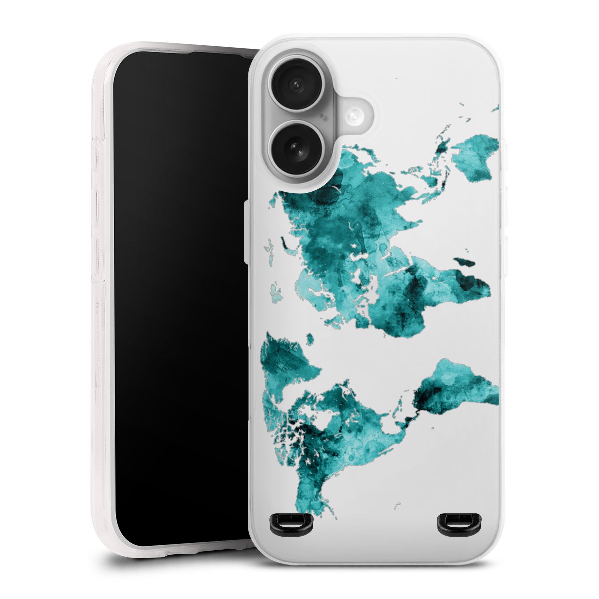 World Map Teal Transparent