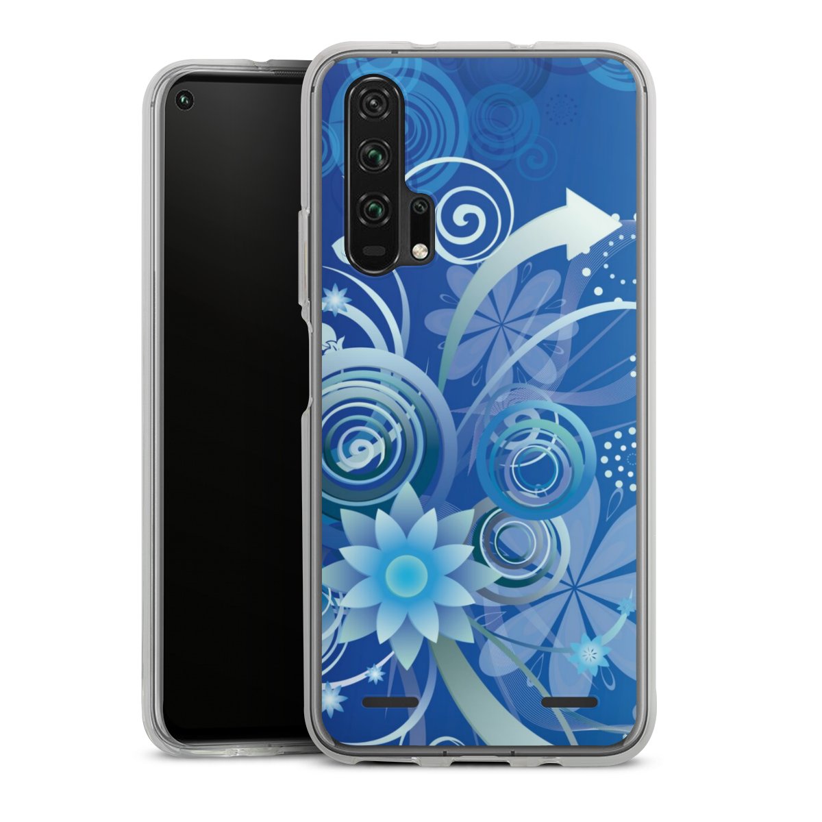 Flowers and Swirls Blue