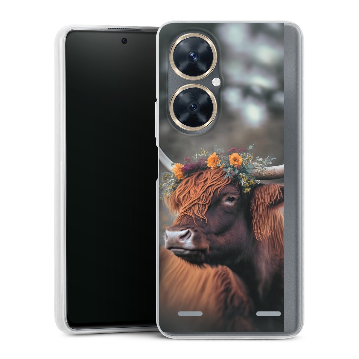 Highland Cow With Flowers with AI